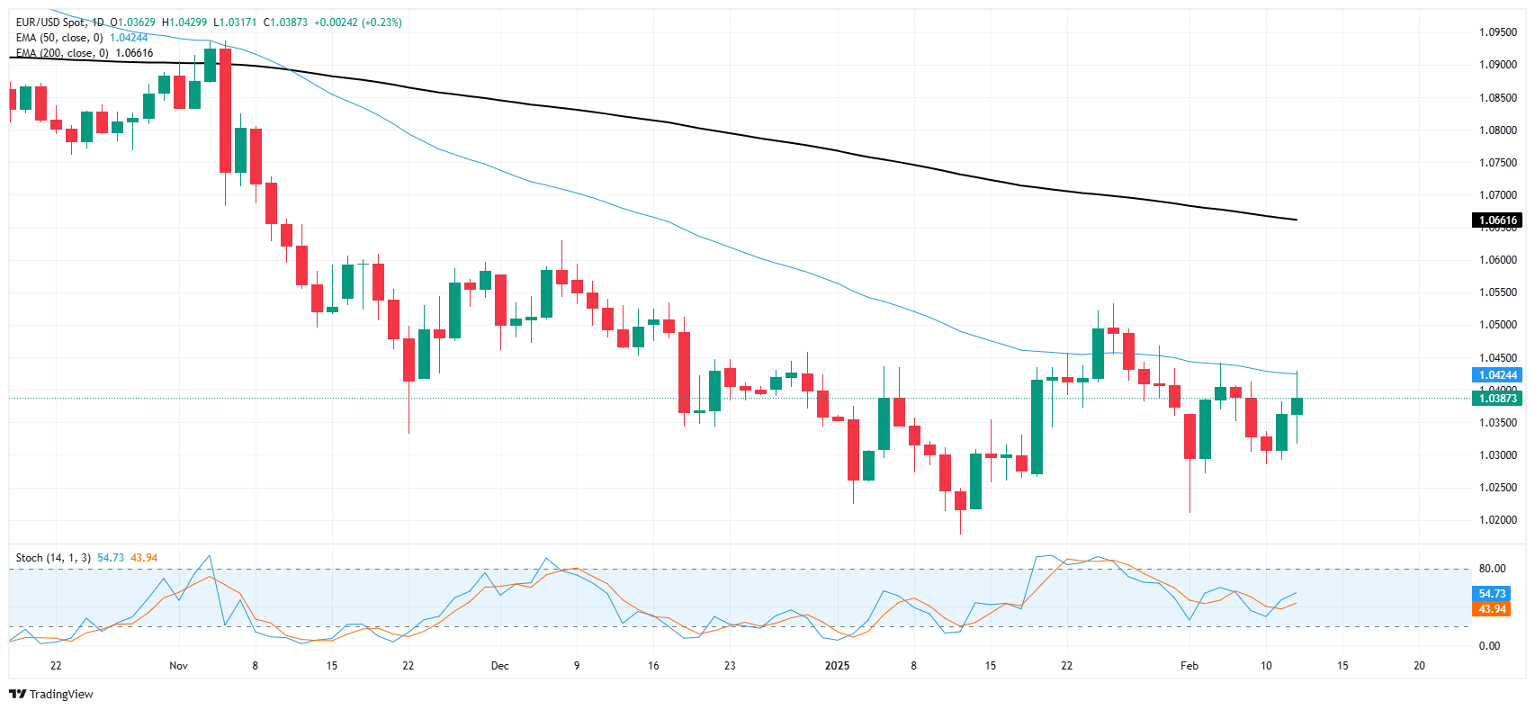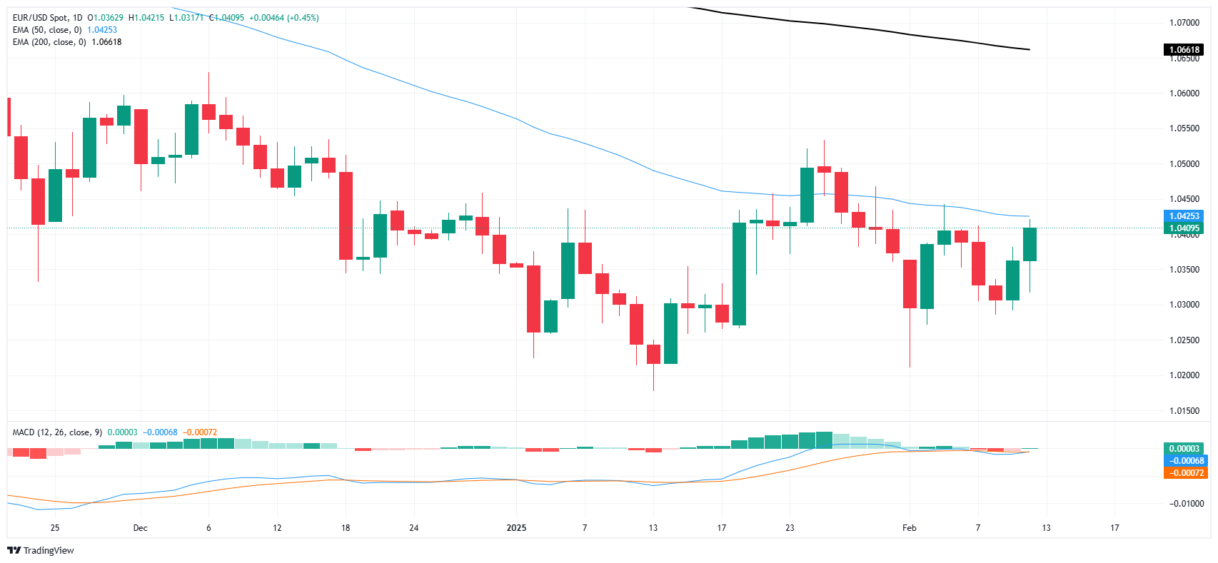 欧元/美元周三收复图表纸,反弹脱离早期跌势,重新回到1.0400关口,因市场消化了1月份普遍加速的美国通胀数据。