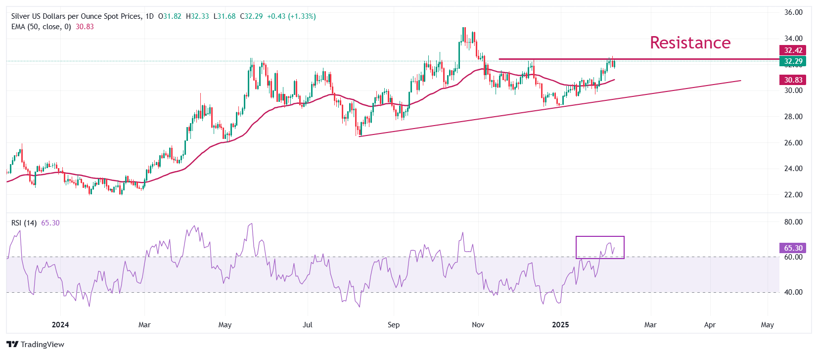 白银价格预测:白银/美元飙升至接近32.30美元,特朗普关税引发避险需求