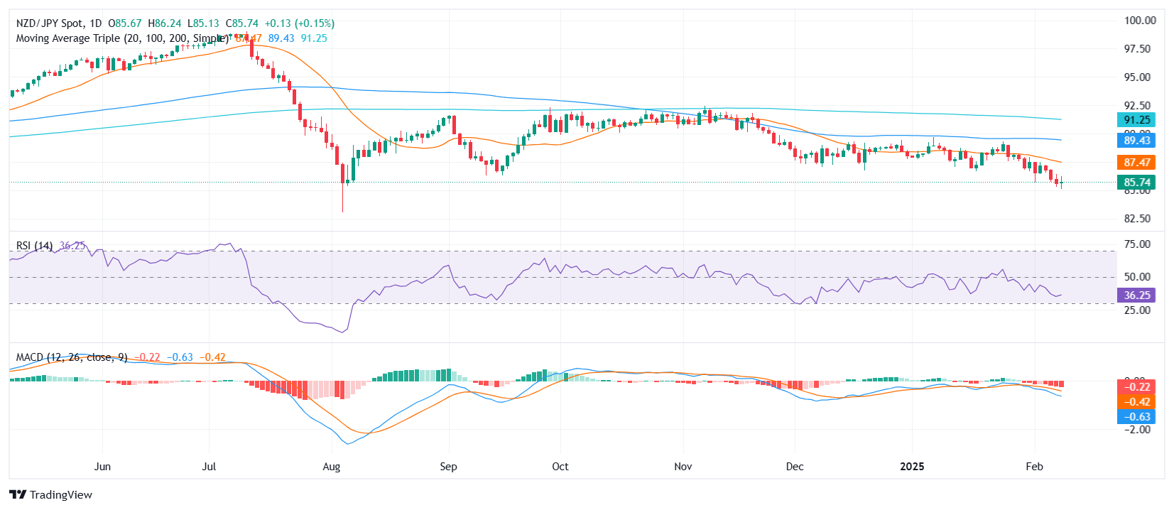 周一,纽元/日元小幅上涨,涨幅为0.15%,交易价格约为85.75,但其整体看跌趋势仍然保持不变