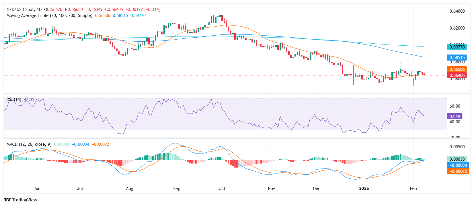 周一,纽元/美元小幅下跌,滑落至 0.5640,卖压持续。