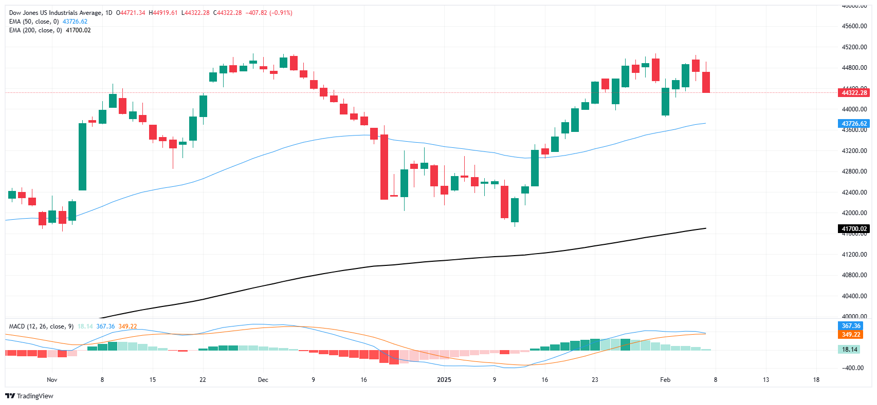 道琼斯工业平均指数(DJIA)在周五遭受新一轮打击,此前非农就业报告(NFP)未能达到市场预期,密歇根大学(UoM)消费者信心指数显示消费者整体经济前景急剧下滑