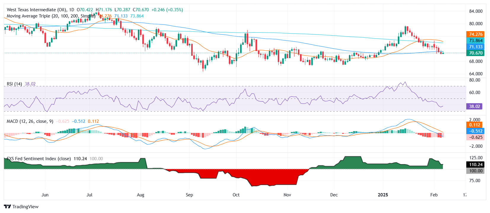 西德克萨斯中质原油(WTI)价格周五攀升至约70.80美元,受最新美国劳动力市场报告后能源需求重新乐观情绪的提振