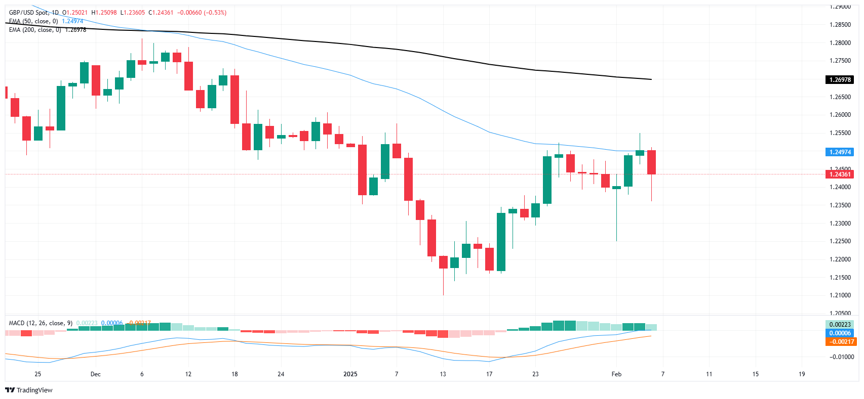 英镑/美元周四震荡,从关键均线技术性回落,并测试1.2400关口下方