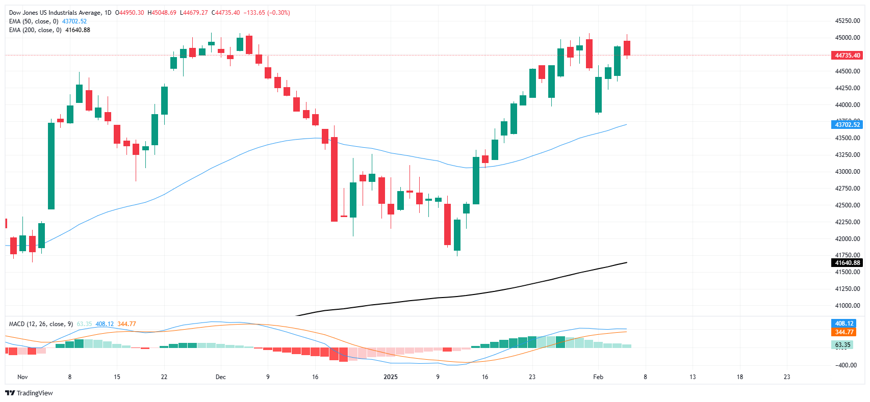 道琼斯工业平均指数(DJIA)周四下滑,下跌约150点,重新测试44,750水平