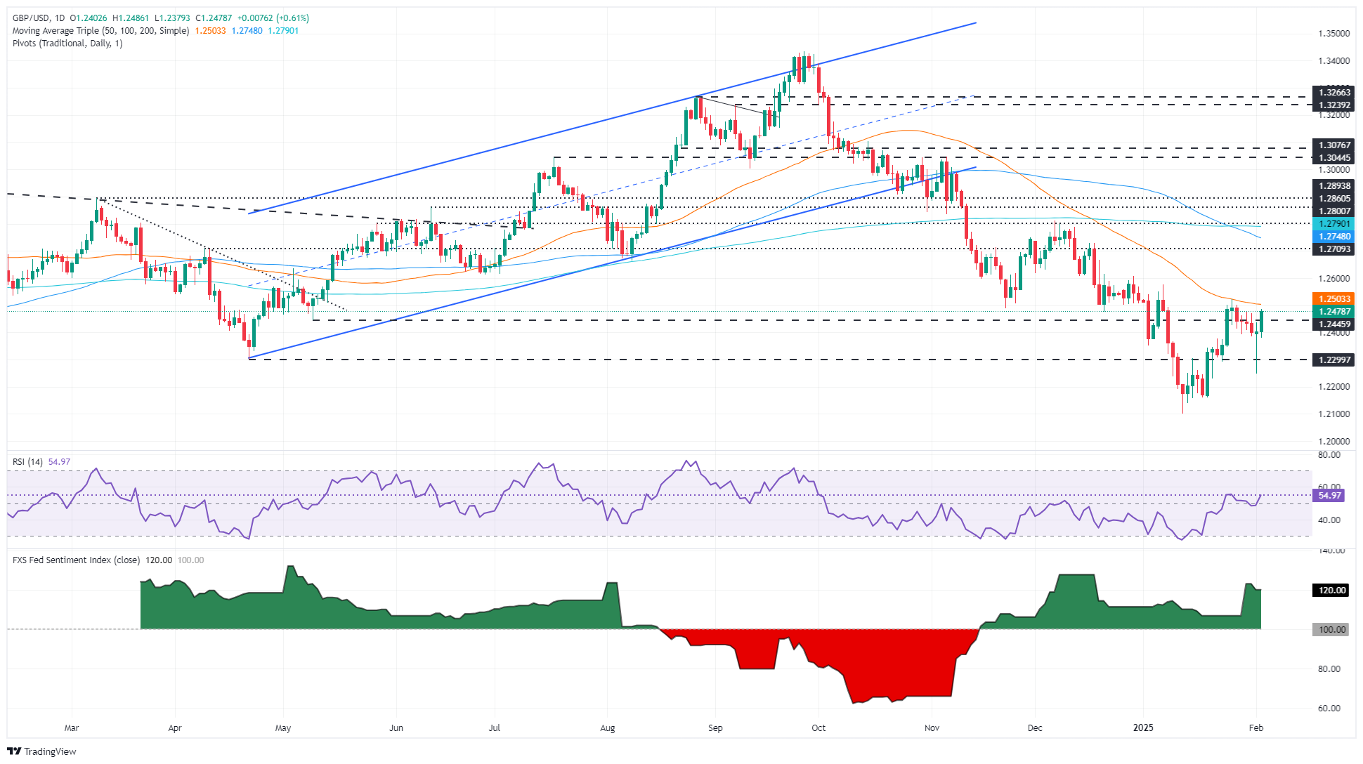 英镑/美元价格分析:在美元疲软的情况下攀升至1.2450上方