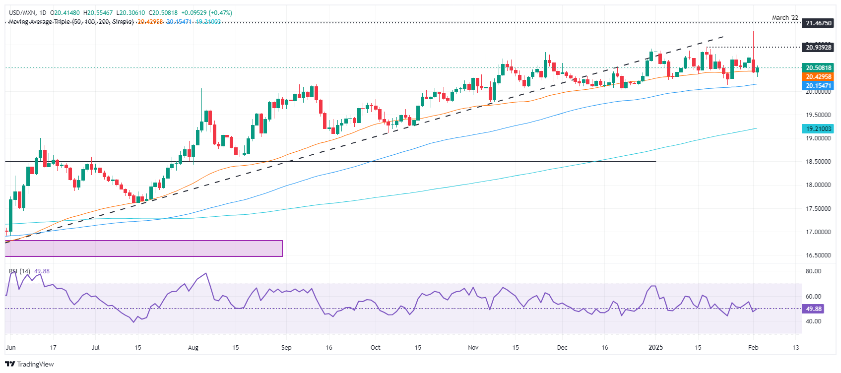 墨西哥比索(MXN)周二对美元(USD)录得下跌,但在美国总统唐纳德·特朗普与墨西哥总统克劳迪娅·谢恩鲍姆举行会谈后推迟对墨西哥的关税后,本周仍保持上涨