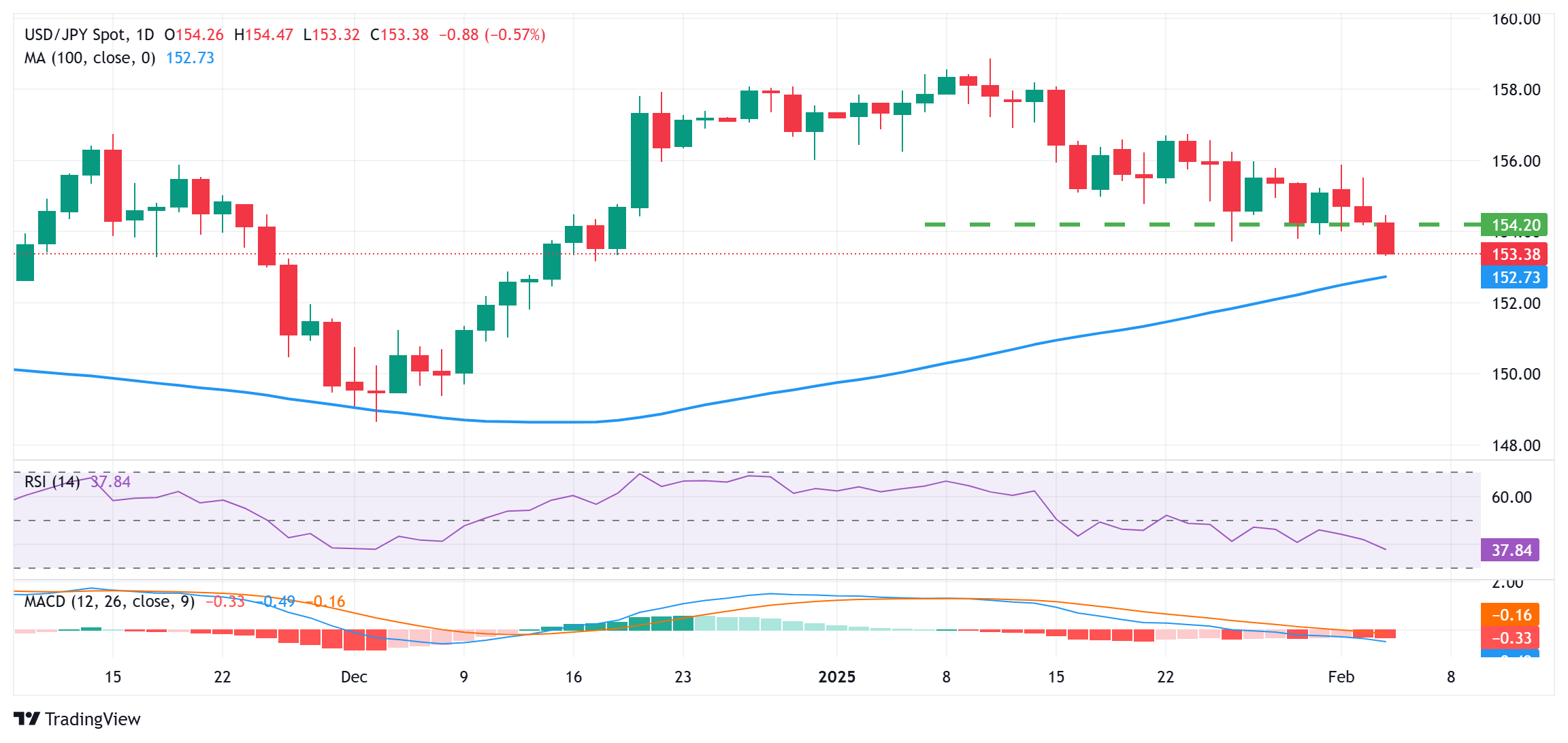 美元/日元连续第二天跌破 155.00,并似乎有望实现日收盘价低于该水平