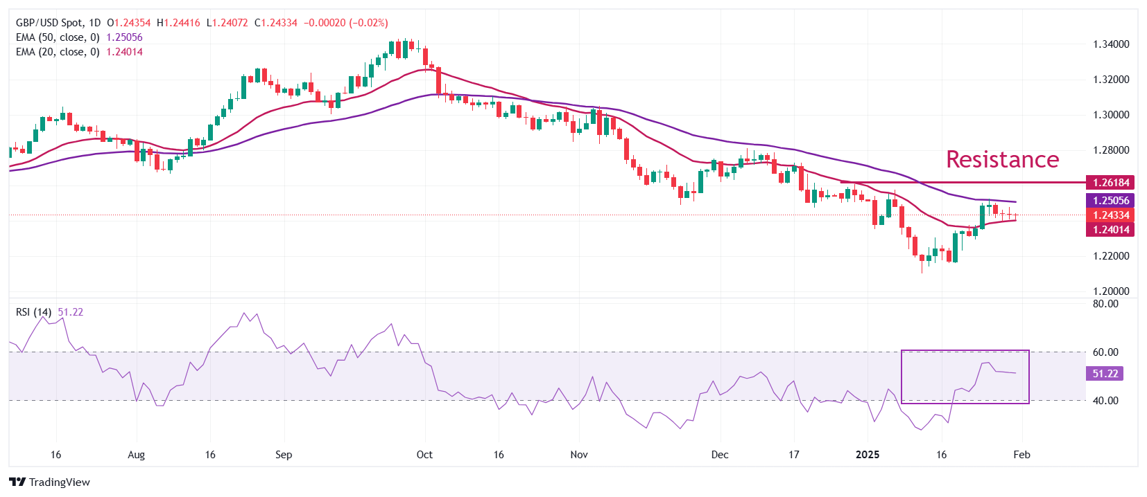 英镑(GBP)在周五的北美交易时段兑美元(USD)小幅走低,但守住了1.2400的关键支撑位