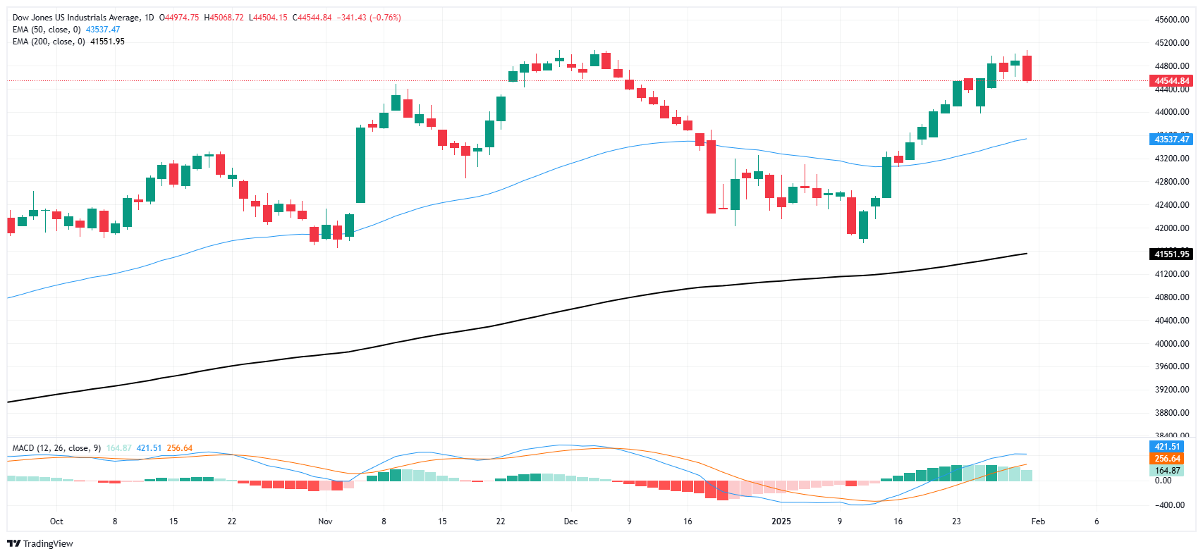 道琼斯工业平均指数(DJIA)在周五美国交易时段尾声时跌破看跌区间