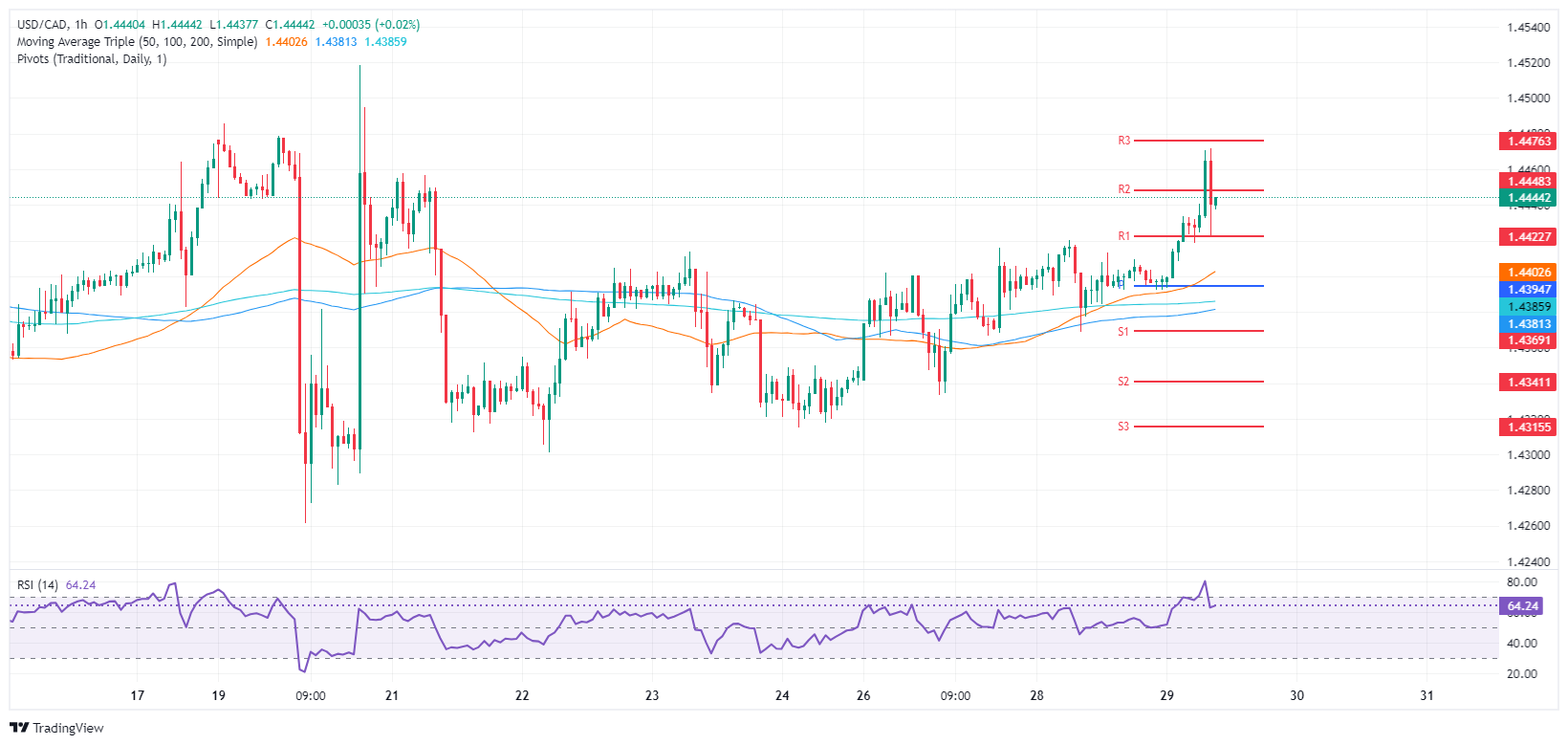 在加拿大央行(BoC)将利率从3.25%下调25个基点至3%后,美元/加元触及六日高点1.4470,符合经济学家的广泛预期
