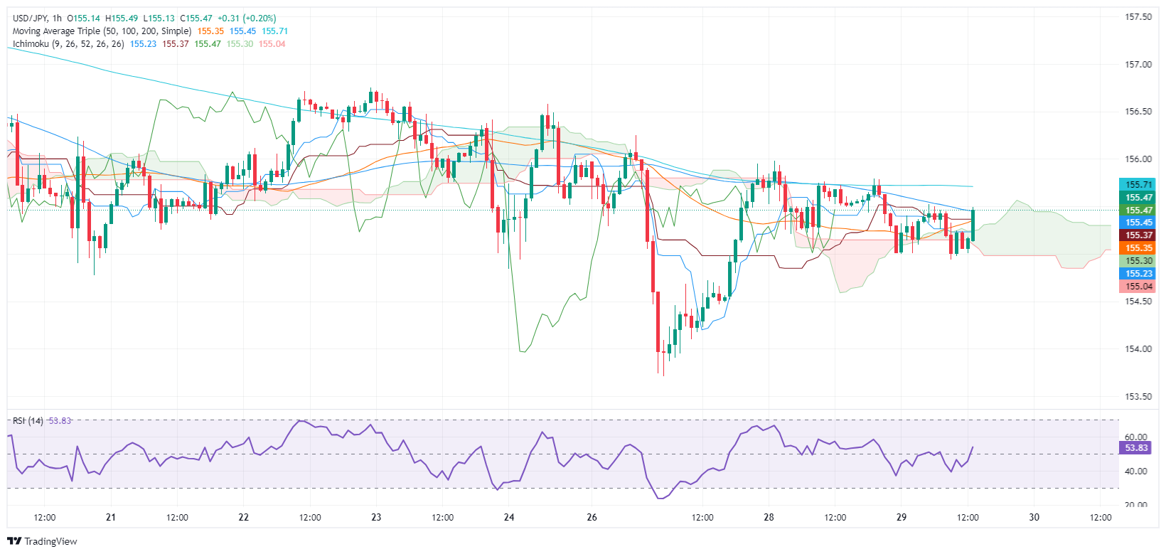 美元/日元在周三北美交易时段小幅下跌至 155.40 附近