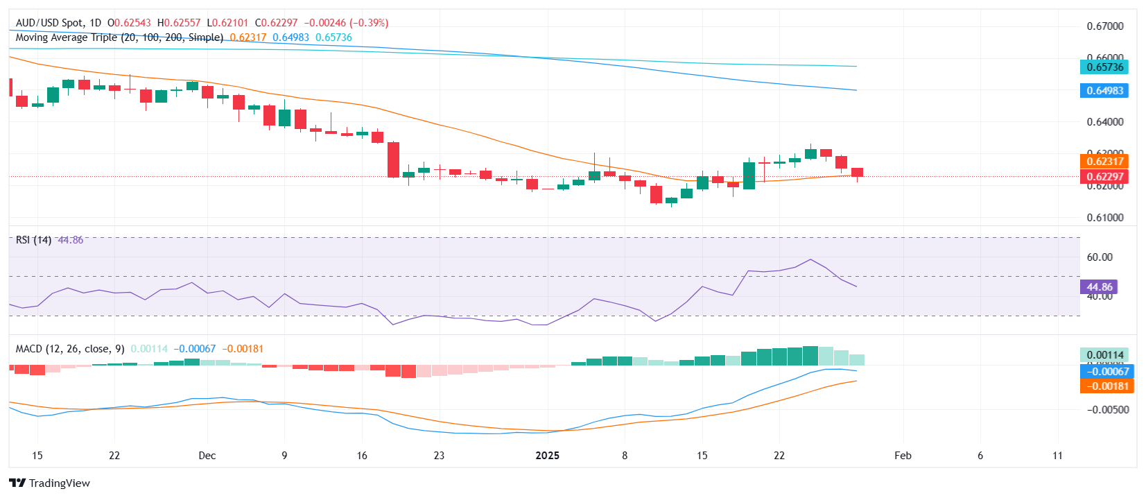 周三,澳元/美元延续跌势,在美联储政策决议后跌至0.6220