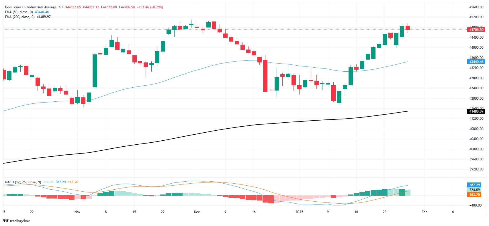 道琼斯工业平均指数(DJIA)周三持平,等待美联储(Fed)主席杰罗姆·鲍威尔和联邦公开市场委员会(FOMC)最新的利率决议,市场普遍预期不会降息