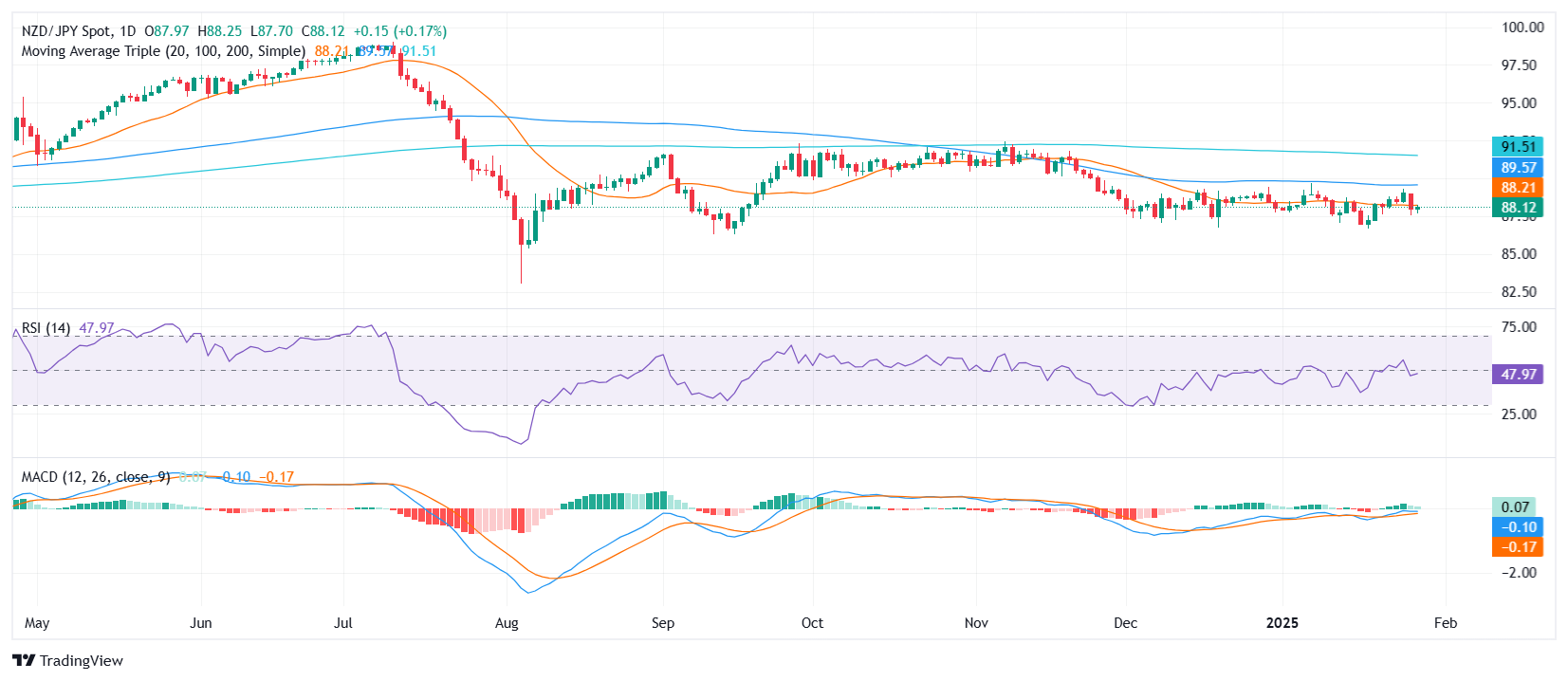 纽元/日元周二小幅上涨,升至 88.15,此前曾有波动