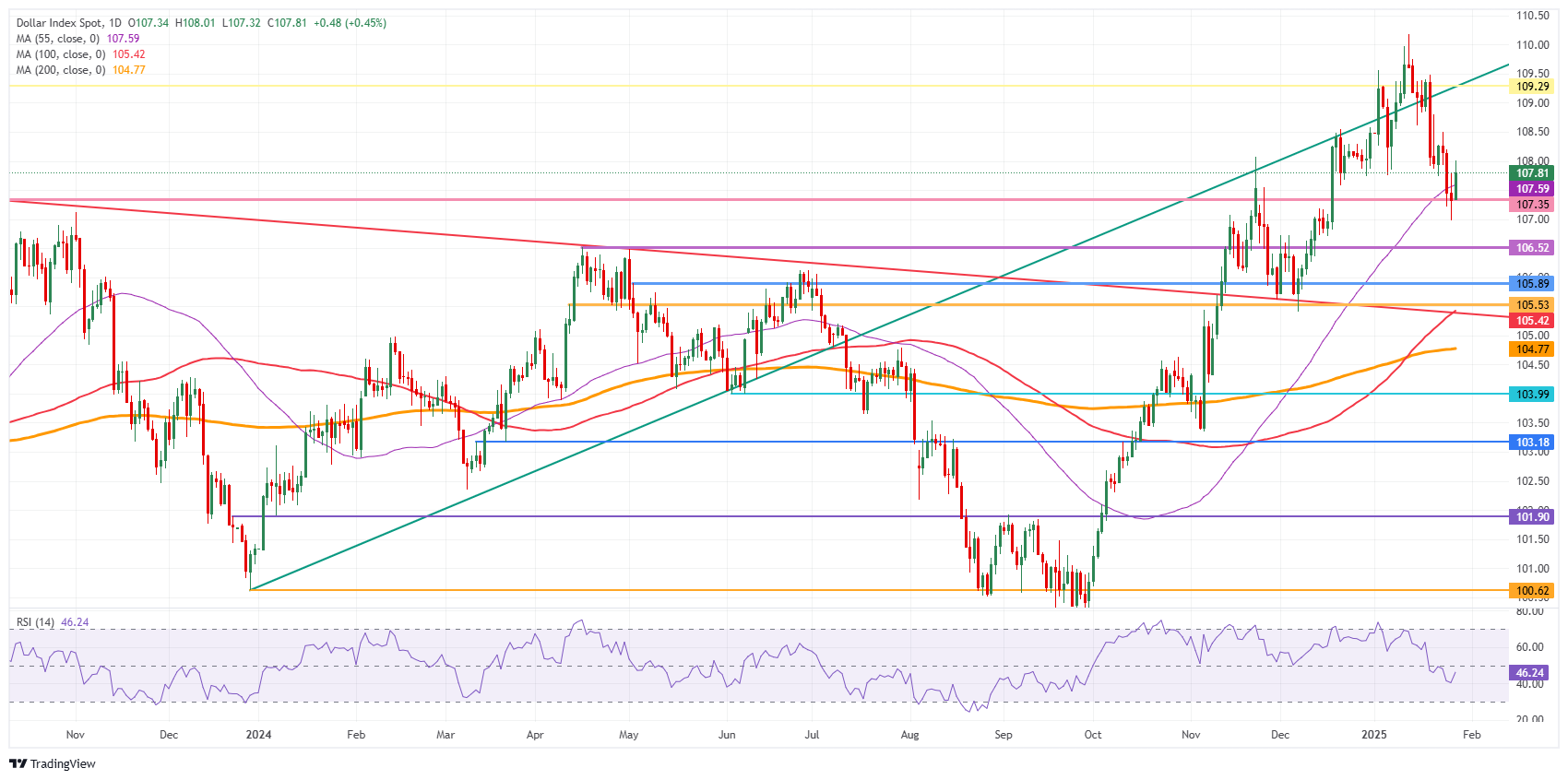 美元指数(DXY)追踪美元兑六种主要货币的表现,在欧洲时段围绕108.00波动,上涨超过0.50%。周一英伟达(Nvidia,NVDA)市值一度蒸发超过6000亿美元的暴跌,助长了美国总统唐纳德·特朗