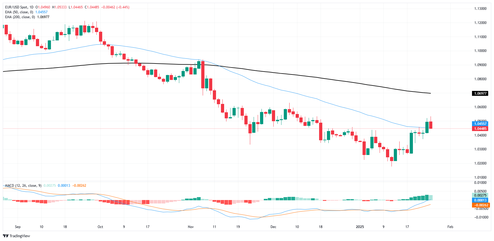 欧元/美元回落至1.05以下,因欧元多头在新的关税威胁下退缩