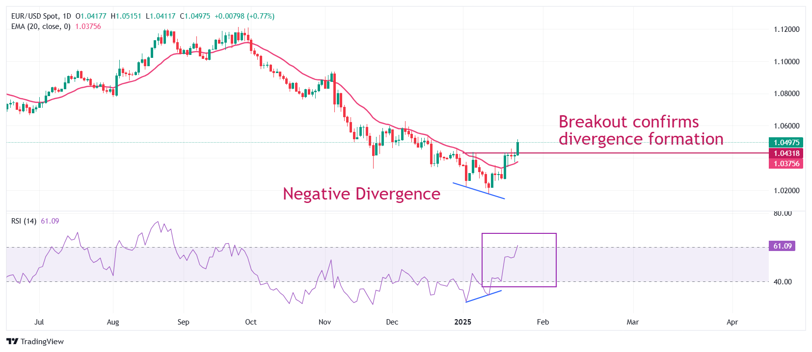 欧元/美元周五上涨至接近1.0500的心理阻力位,因汉堡商业银行(HCOB)报告称,欧元区1月份综合采购经理人指数(PMI)在过去两个月萎缩后有所增长