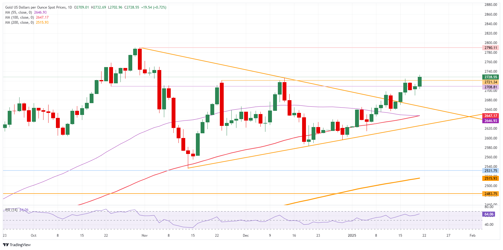 金价延续涨势,并在特朗普上任首个完整日之前创下两个月新高