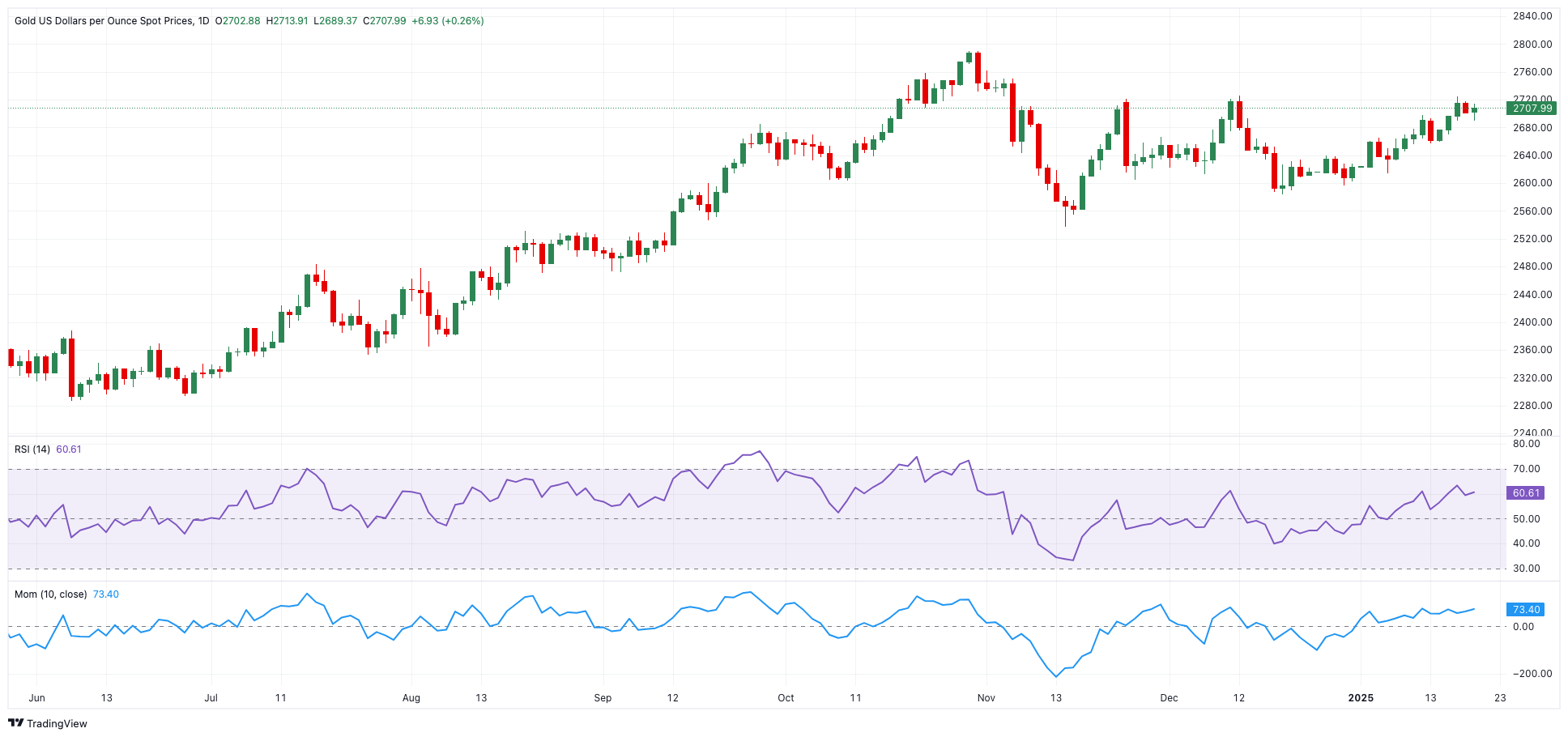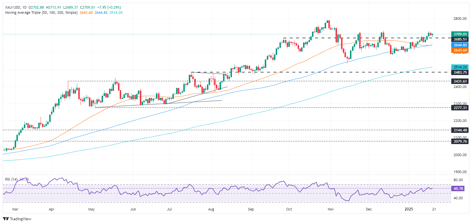 黄金价格(XAU/USD)在本周初继续在 2700 美元附近保持看涨势头,由于马丁·路德·金纪念日,交易条件清淡