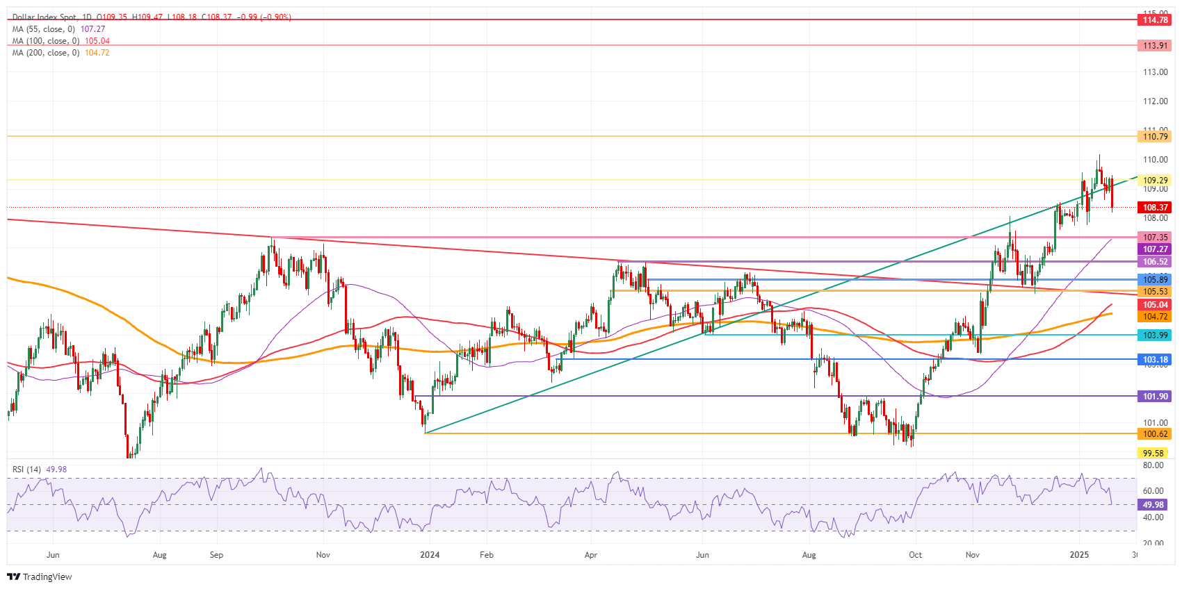 美元指数(DXY)追踪美元兑六种主要货币的价值,在当选总统唐纳德·特朗普即将宣誓就任美国第47任总统的几个小时前下跌了1%。美国的几个资产类别