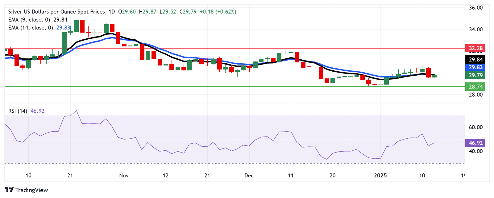 白银价格预测:白银/美元测试接近30.00美元的14日EMA