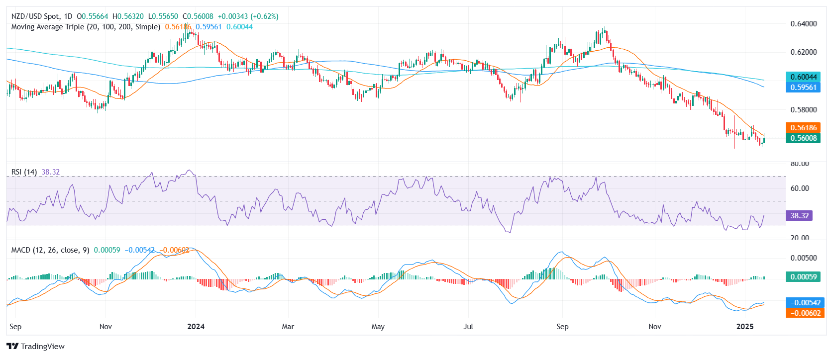 纽元/美元货币对周二小幅上涨,攀升至约 0.5600,此前该货币对经历了自 2022 年 10 月以来未见的长期下跌。