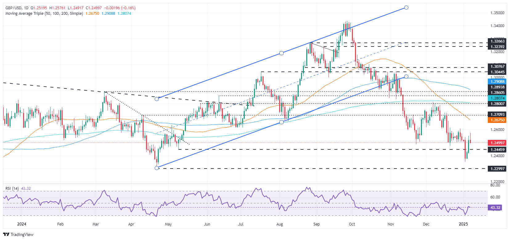英镑/美元在强劲的美国服务业PMI和JOLTS数据公布后回落至1.2500以下