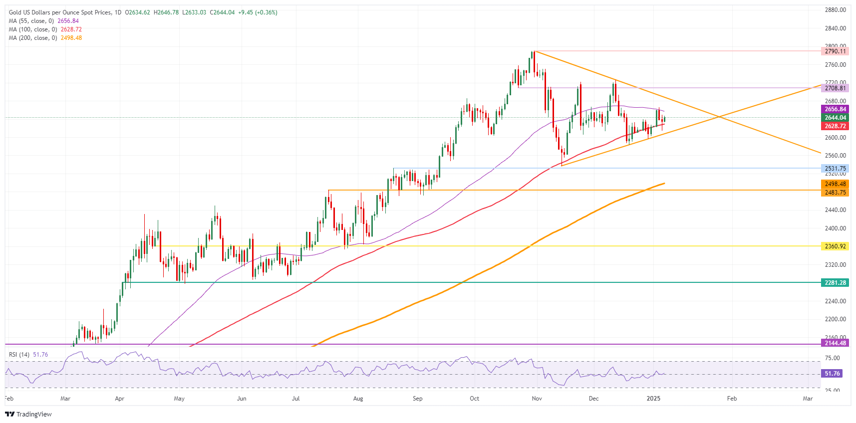 黄金价格(黄金/美元)几乎没有波动,周二仍停留在2640美元左右。最近,有关美国当选总统唐纳德-特朗普(Donald Trump)欲征收关税计划的一连串言论和头条新闻令市场人心惶惶。