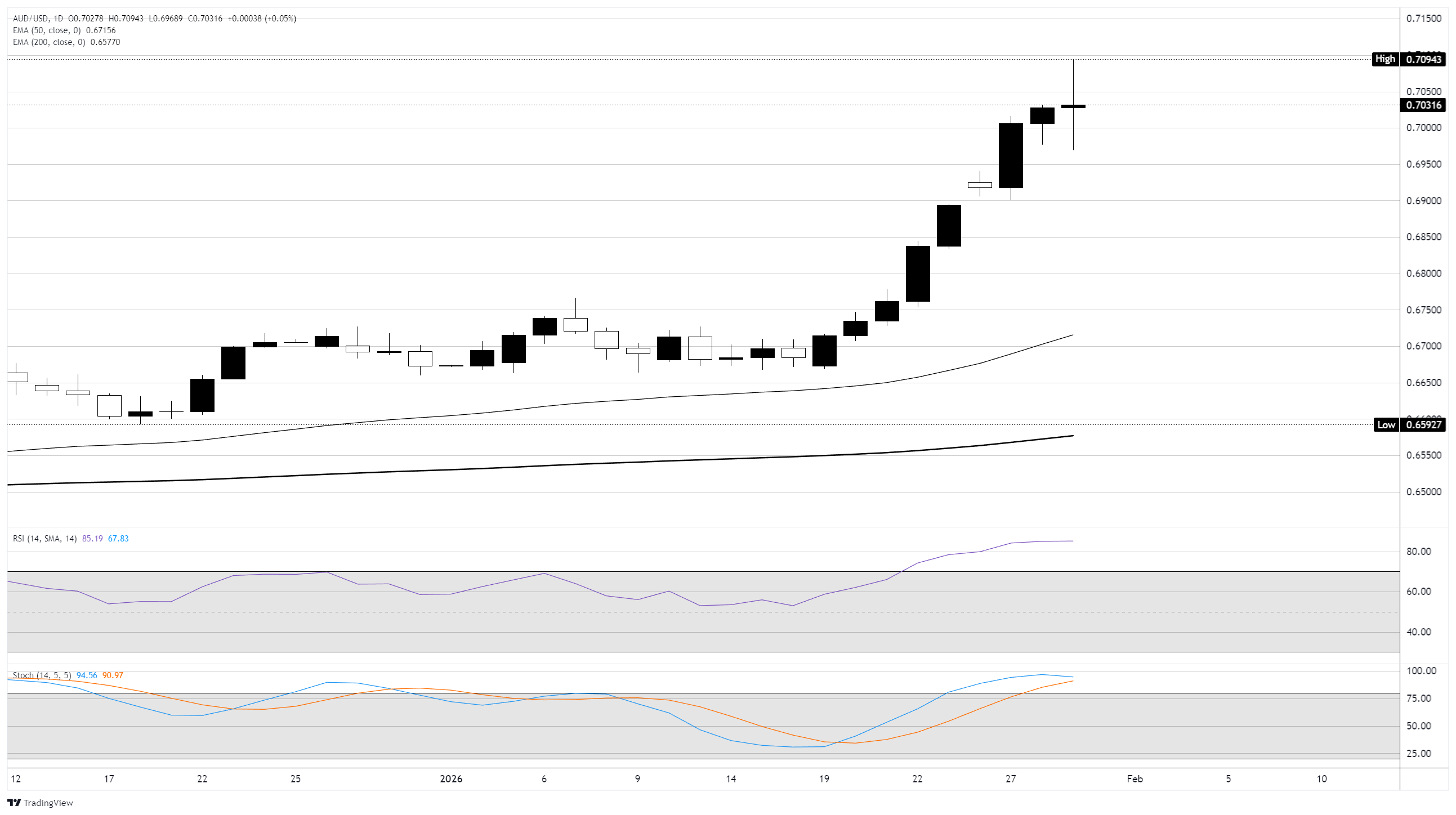 周四,澳元/美元在波动性加剧的情况下陷入了滑坡。澳元(AUD)兑美元(USD)触及三年来的高点,但在市场情绪普遍转差后,回落至当日低位。
