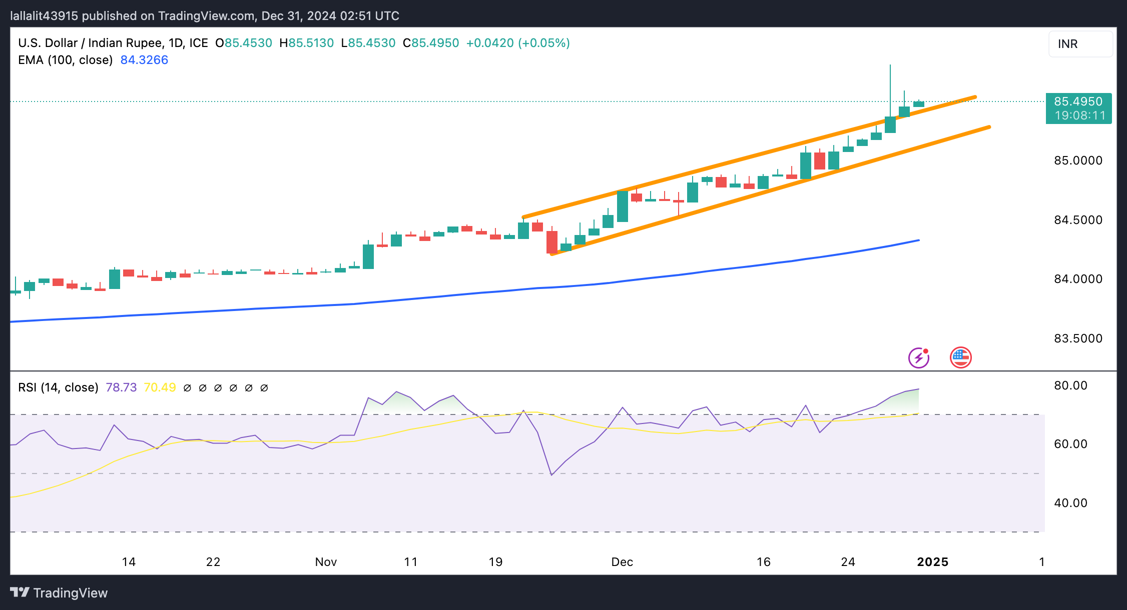 新年假期前,美元/印度卢比吸引了一些买盘