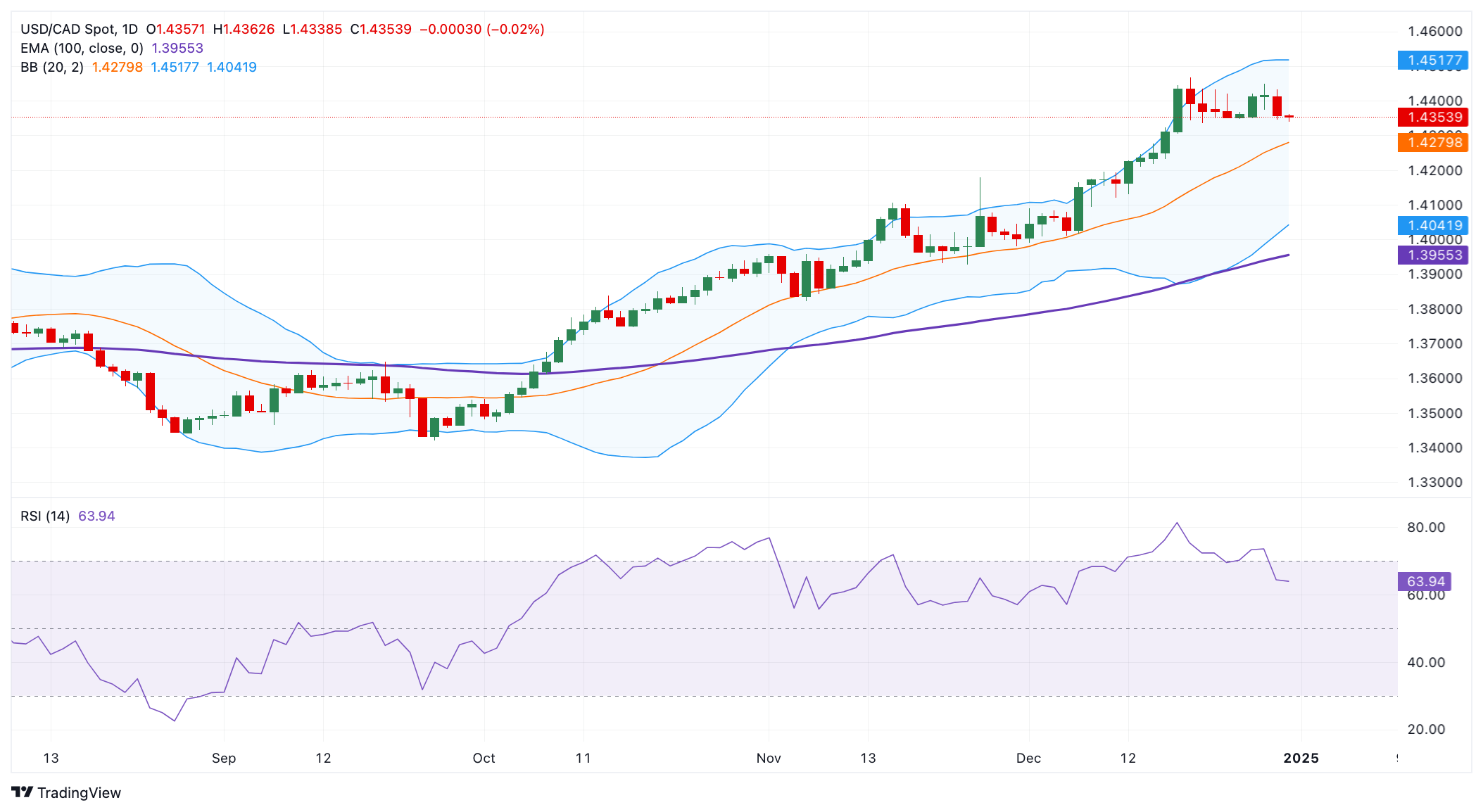 周二欧洲早盘时段,美元/加元在1.4350附近的消极区域交投。原油价格回升提升了与大宗商品挂钩的加元(CAD),对美元/加元形成逆风。不过,在美联储(Fed)将在2025年放缓降息步伐的押注不断升温的