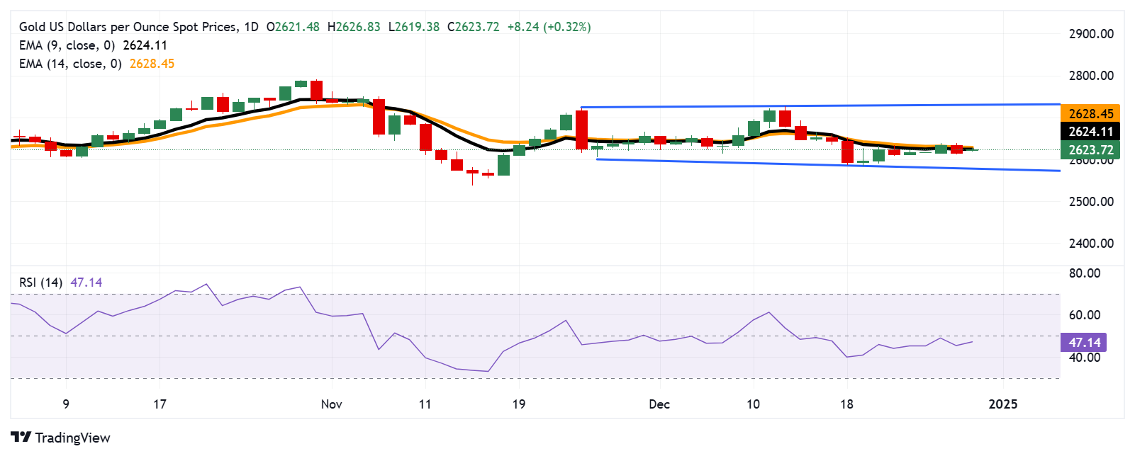 白银价格(XAG/USD)在周一新年前成交量稀少的状况下,在上周五低点29.50美元附近谨慎交易。由于市场预期美联储(Fed)2025年的温和政策宽松周期将使美国国债收益率持续走高,美元(USD)前景