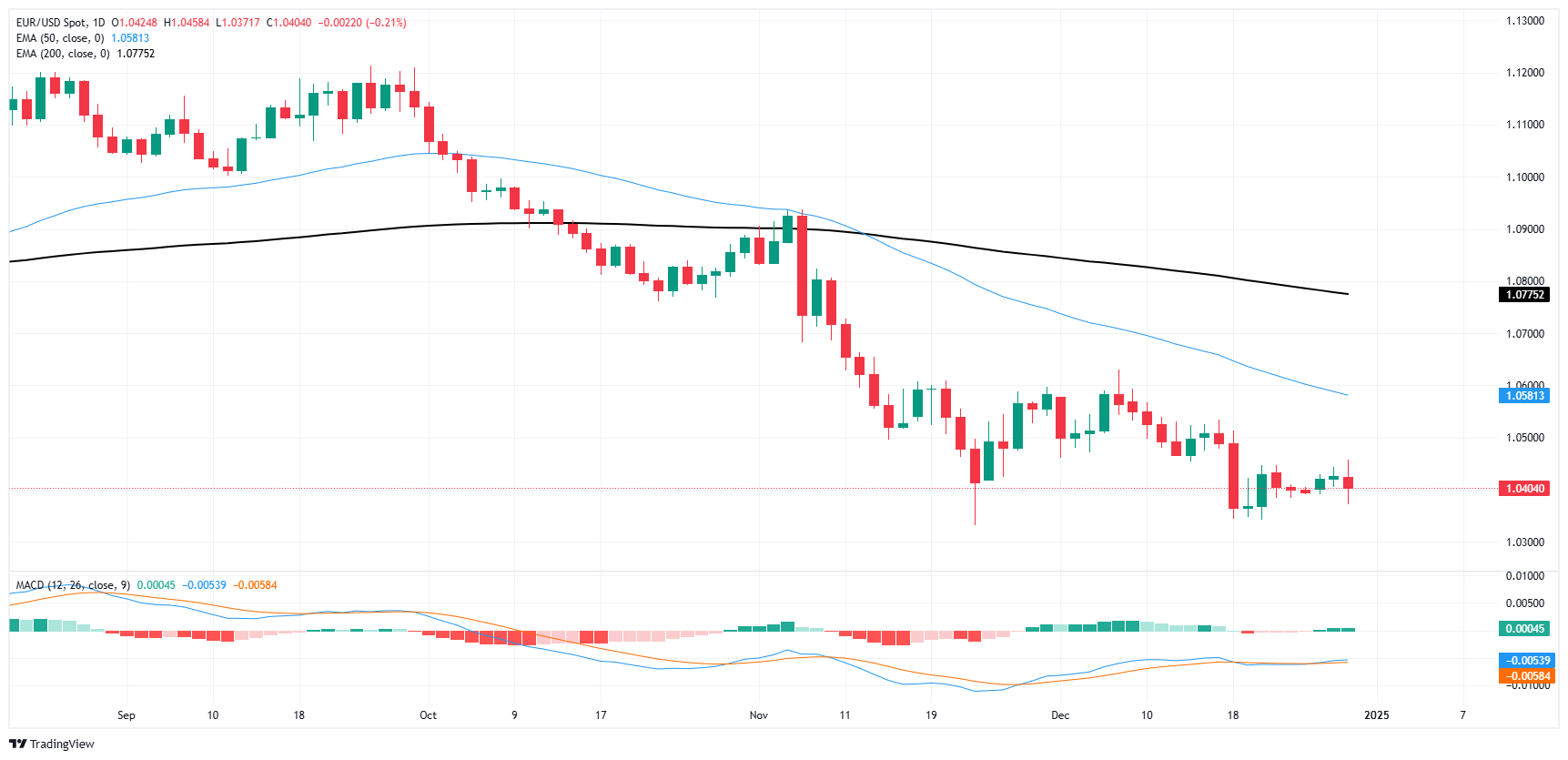 周一,欧元/美元跌破1.0400关口,市场在年末假期期间游走。交易量低迷,投资者对大幅波动犹豫不决,导致风险偏好下降,影响了大多数资产类别,并将欧元/美元打压至近期震荡区间下沿。