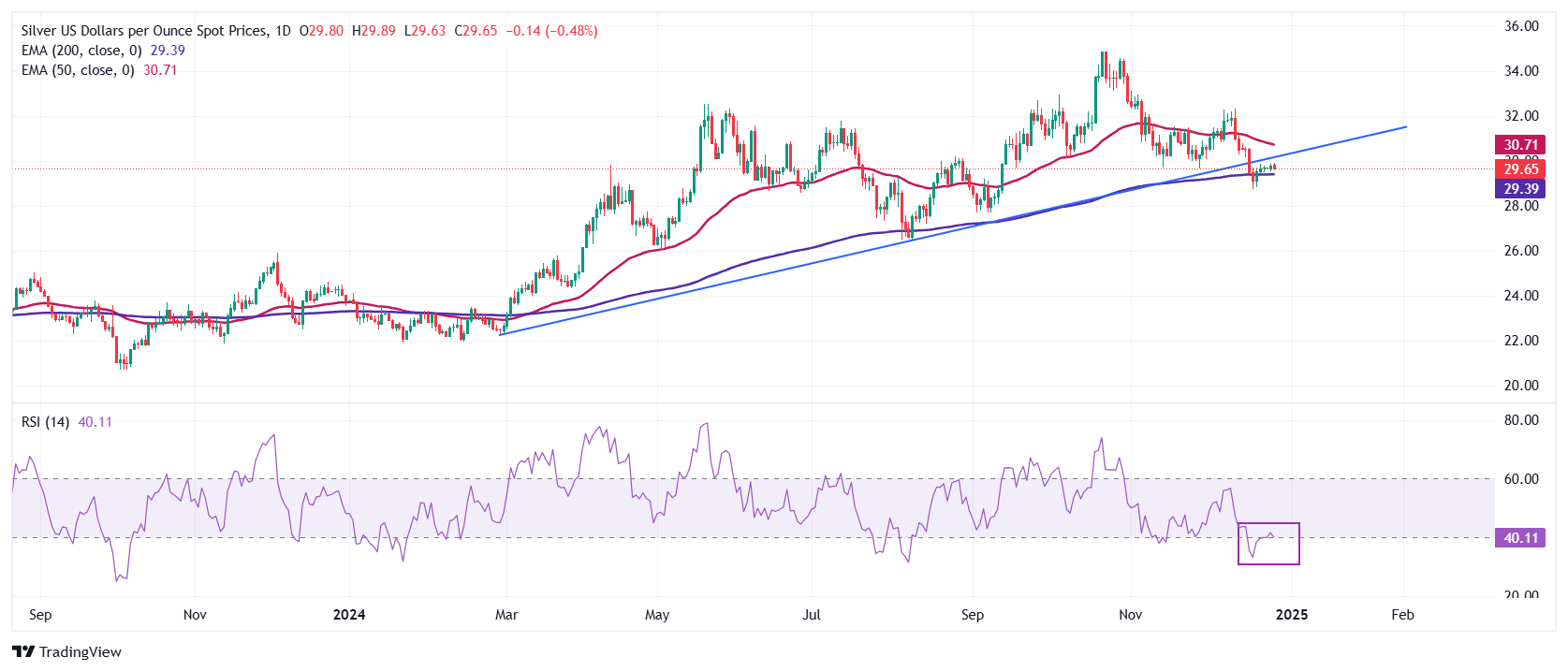 继周五圣诞节和节礼日假期之后,白银价格(XAG/USD)在交易量稀少的时段下跌至 29.60 美元附近。尽管中东地区以色列和伊朗之间的紧张局势已经升级,但白色金属仍然承压。