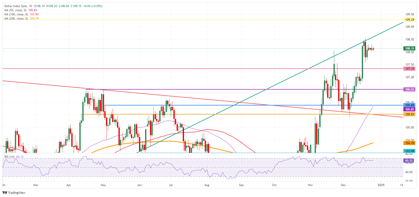 美元(USD)周五的交易区间非常狭窄,DXY 指数维持在 108.00 以上,原因是市场保持谨慎,而且由于圣诞假期,交易台人手不足。美元未能对亚洲市场的更多行动做出反应,数据显示日本工业生产进一步收缩