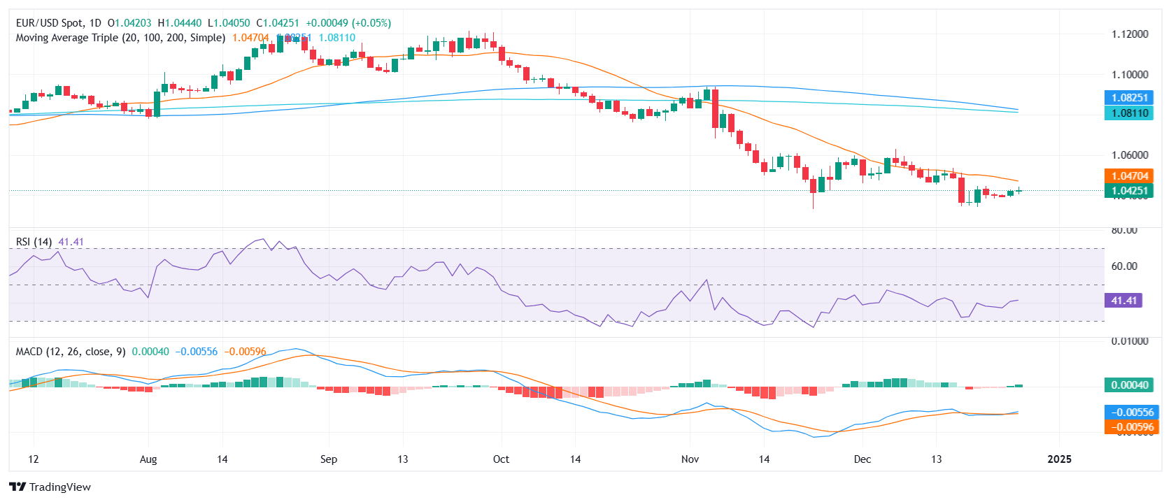 欧元/美元价格分析:货币对小幅上涨至1.0430,仍受关键阻力位限制