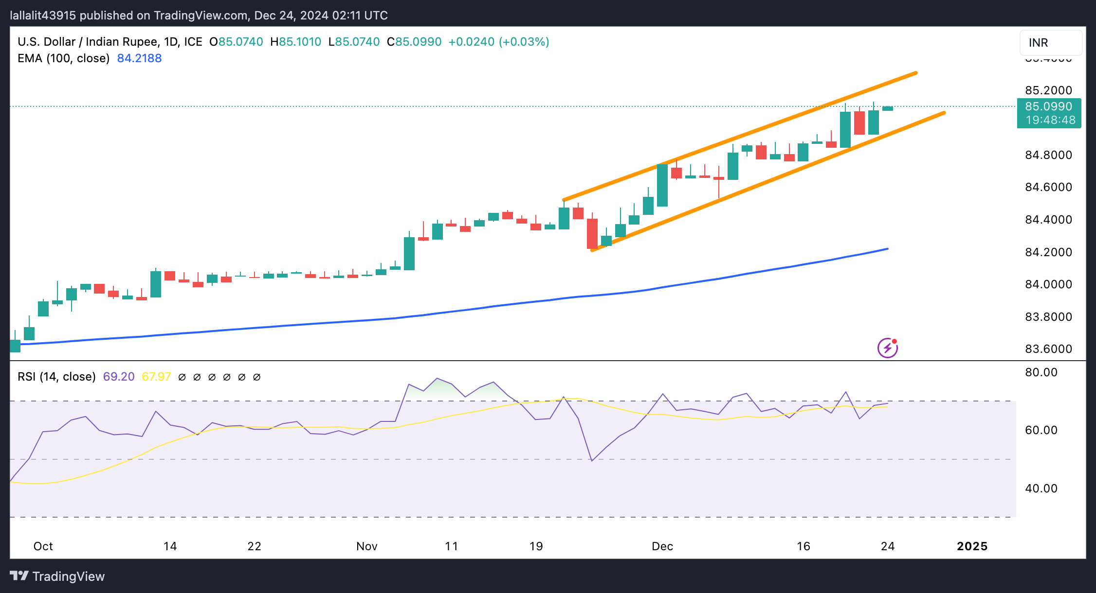 美国从明天开始进入假期周,因此交易量会比较稀少,因此主要货币可能会保持稳定,目标可能会被推迟。美元指数在107.00上方,短期内可能升向108.50-109。欧元、欧元/印度卢比和澳元可分别在 1.0