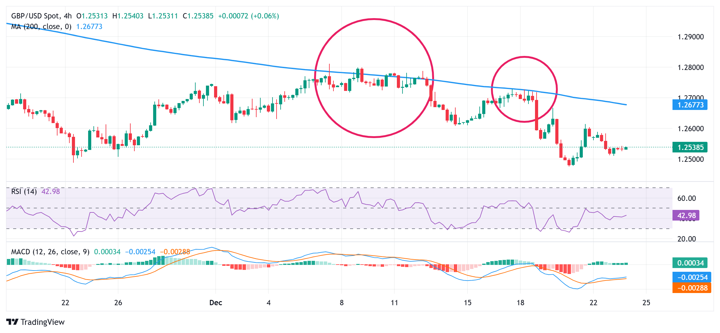 英镑/美元价格预测:在1.2500中段以下盘整,尚未脱离困境