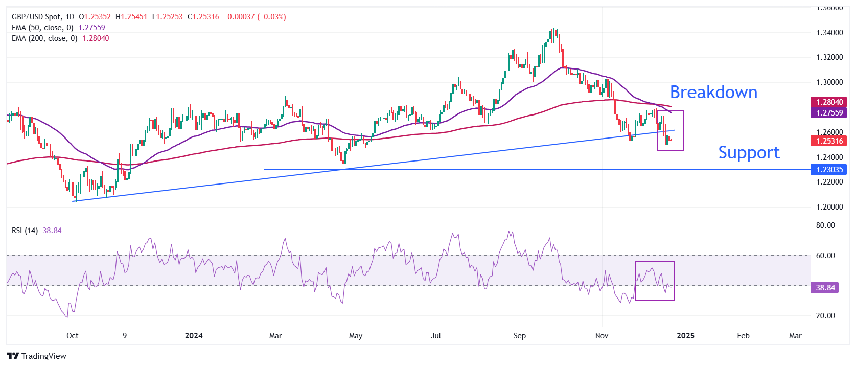 周二欧洲时段,欧元/美元在 1.0400 附近窄幅波动。由于周三和周四外汇市场分别因圣诞节和节礼日而放假,交易量清淡,导致该货币对的价格走势平淡。 欧元/美元的整体前景看跌。欧元 (EUR) 周一小幅