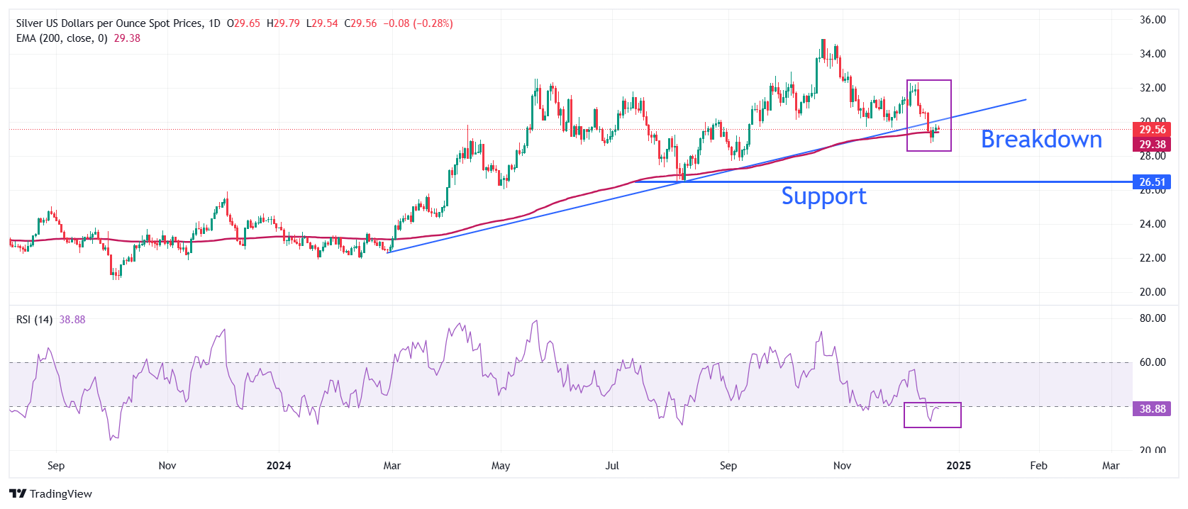 白银价格预测:白银/美元跌至29.50美元附近,面临美联储温和鹰派立场的压力
