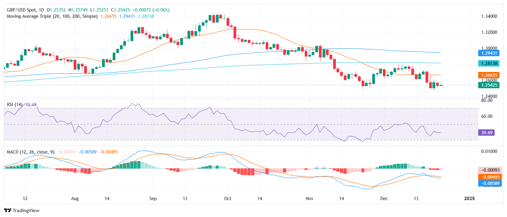 由于即将到来的圣诞假期,本周市场交易量低迷,英镑/美元小幅上涨至 1.2550。