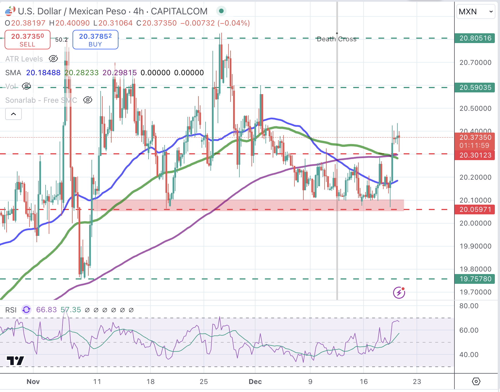 周四,墨西哥比索(MXN)兑美元(USD)小幅上涨,此前一天曾跌至接近 20.40 的三周低点。