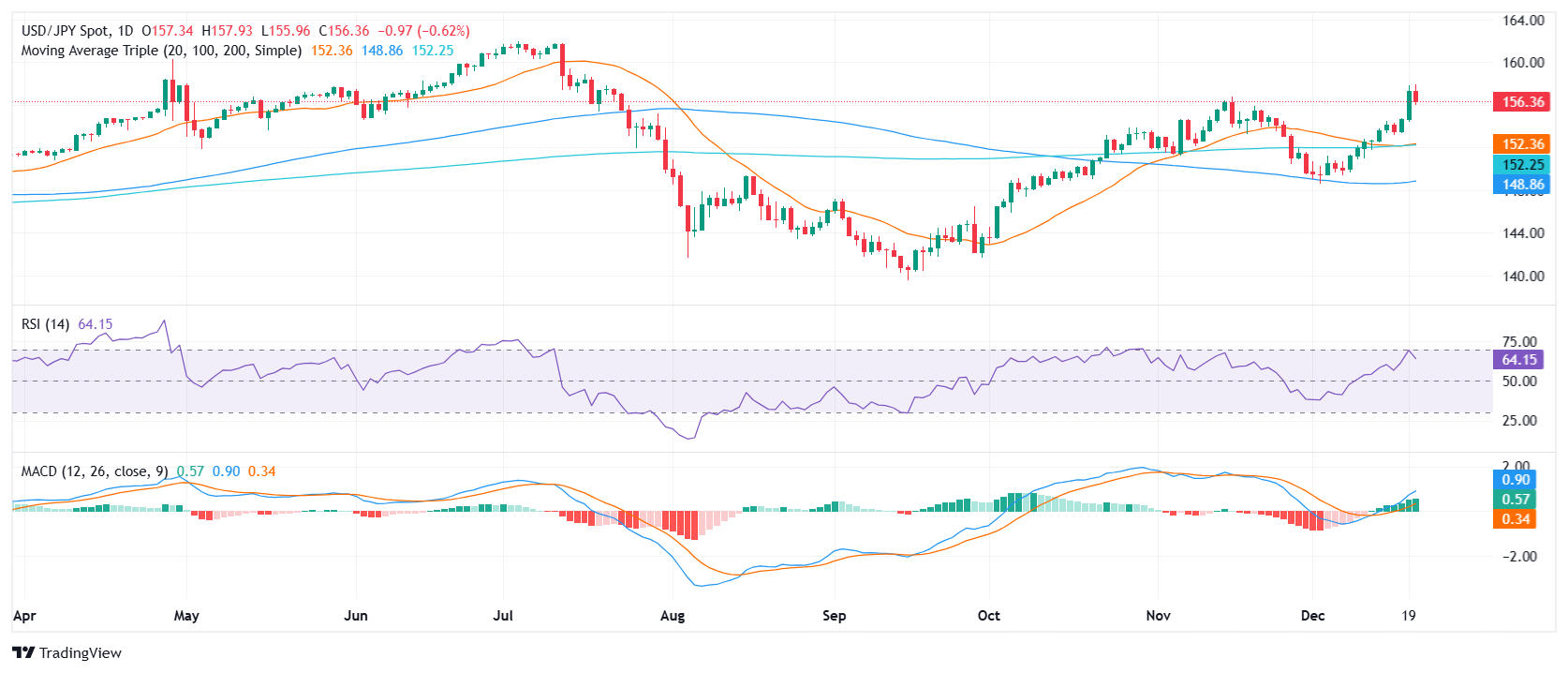 美元/日元在美国 PCE 数据疲软后回落至 156.50,此前曾触及数月高点