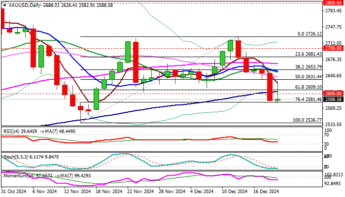 黄金价格从美联储周三降息后2.3%的冲击下,从一个月新低(2582美元)反弹,但涨势迄今为止是短暂的。 金价反弹在 2626 美元处遇阻,随后加速走低,再次将价格推低至重要(突破)支撑位 2605/0