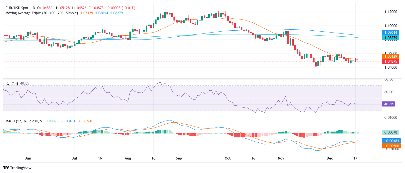 欧元/美元价格分析:该货币对徘徊在1.0500附近,在美联储决议前缺乏动能