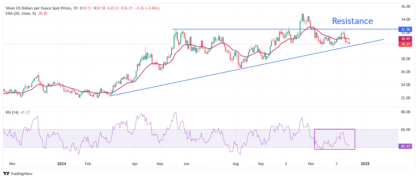 白银价格预测:白银/美元在美联储政策会议前的不确定性中下滑至30.30美元附近