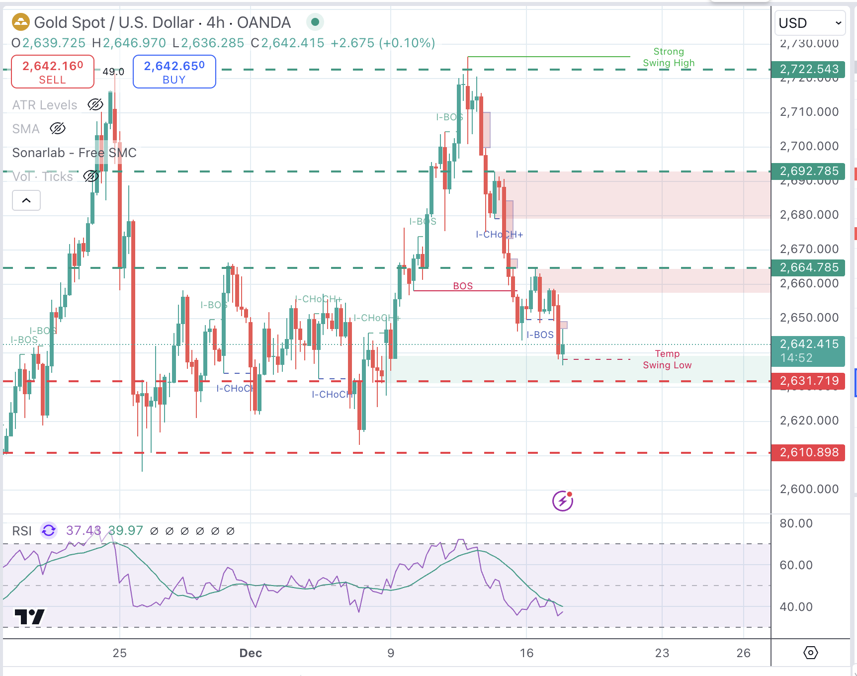 金价未能突破 $2,665 并恢复其短期看跌趋势,因美元走强。