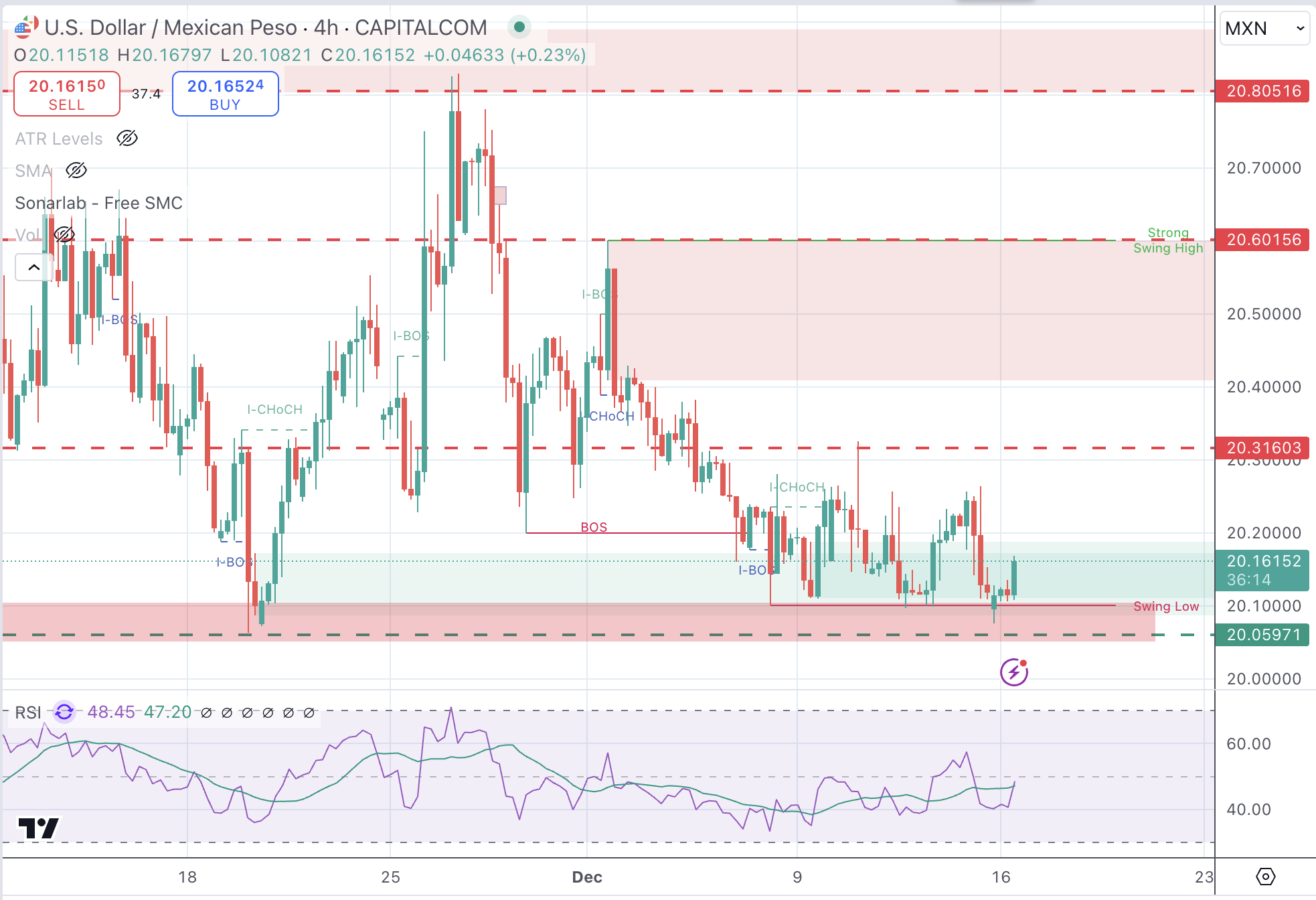 墨西哥比索(MXN)本周开盘小幅上涨,并在20.00关口附近盘整。