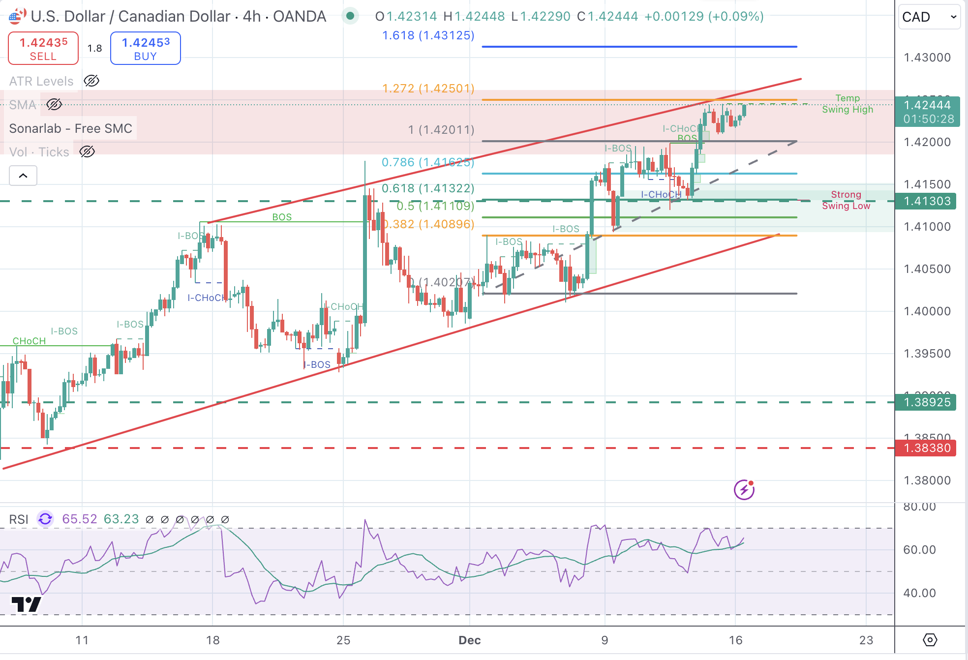 美元/加元恢复上升趋势,测试1.4240的长期高点