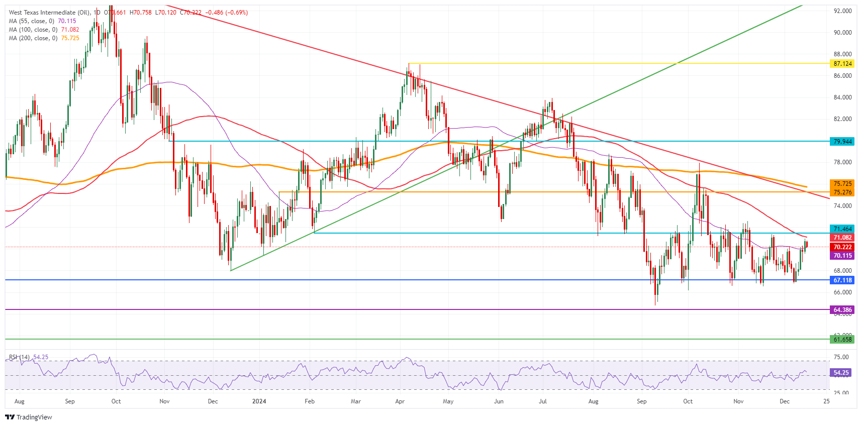 原油周一下跌,徘徊在 70 美元整数水平,此前中国 11 月零售销售数据抑制了该地区迅速复苏的希望。3% 的增长远低于共识,而且情况还将进一步恶化,因为通往中国的主要航线上的油轮费用正下跌至今年以来的